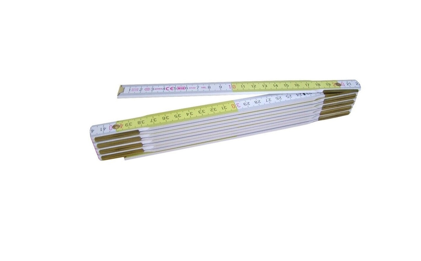Doppio metro in legno, Bianco/Giallo, con 10 stecche da 20 cm e misuratore d'angolo.