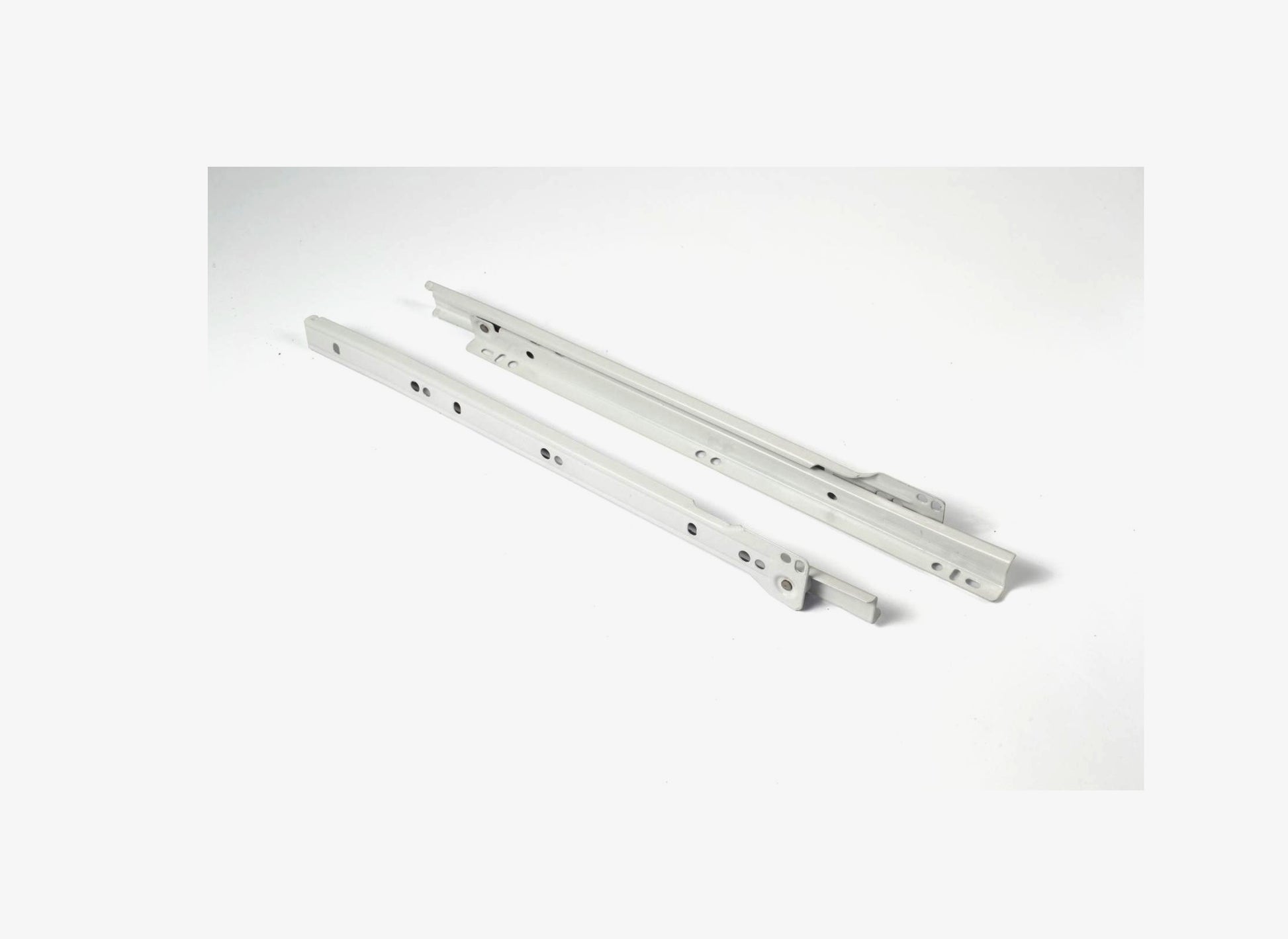 Guida per Cassetti, estrazione parziale, movimento su rulli, portata 20Kg. Colore Bianco o Marrone, in metallo stampato. Vendute a coppia (per singolo cassetto).